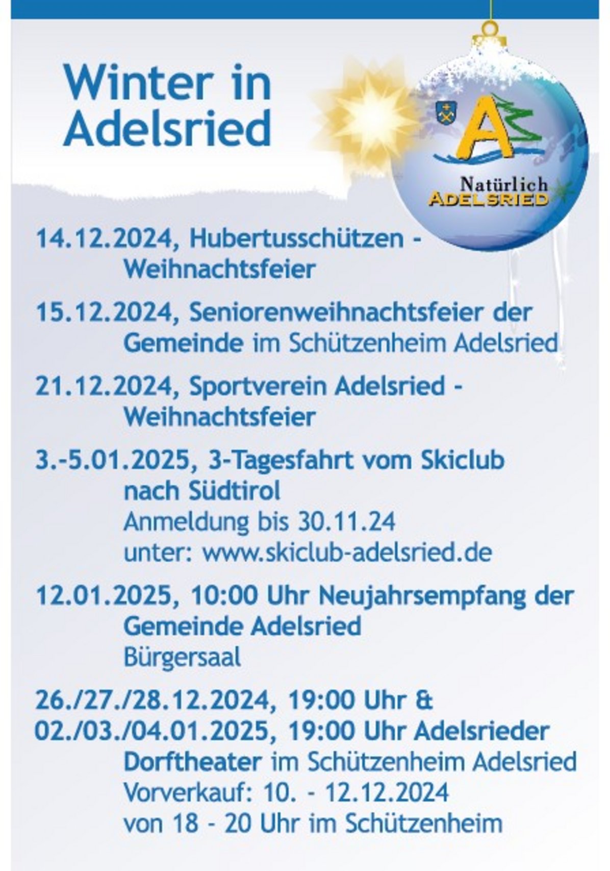 Wegen unseres diesjährigen Betriebsausfluges ist am Montag, dem 31. Juli 2023 die Gemeindeverwaltung sowie der Bauhof Adelsried nicht besetzt. Auch der Kindergarten bleibt geschlossen.